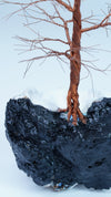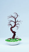 Copper Wire Bonsai Tree with Natural Branch & Ceramic Base – 7.6" Tall
