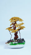 Handmade Wire Bonsai Tree Sculpture – Gold & Green Wire Art with Stone Base | Feng Shui Prosperity Gift | Miniature Tree Decor