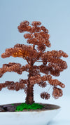 Meditative Bonsai Tree Sculpture – Beaded Bonsai Art with Copper Wire & Black Glass Seed Beads in White Pot